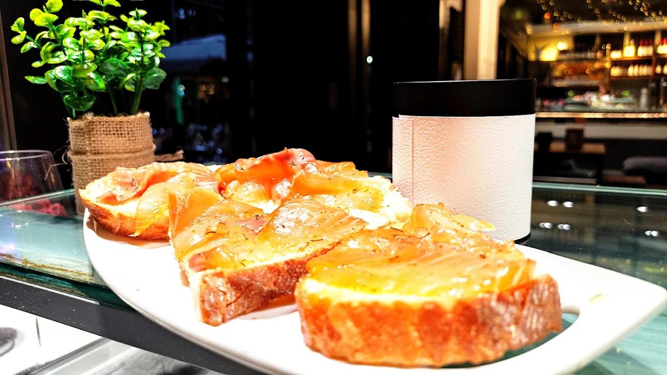 Tostas hechas al momento, elaboradas con ingredientes frescos y de alta calidad, además de una selección de Ibéricos, Laterío, Gildas, Copas y Vinos excepcionales que complementan perfectamente la experiencia gastronómica.